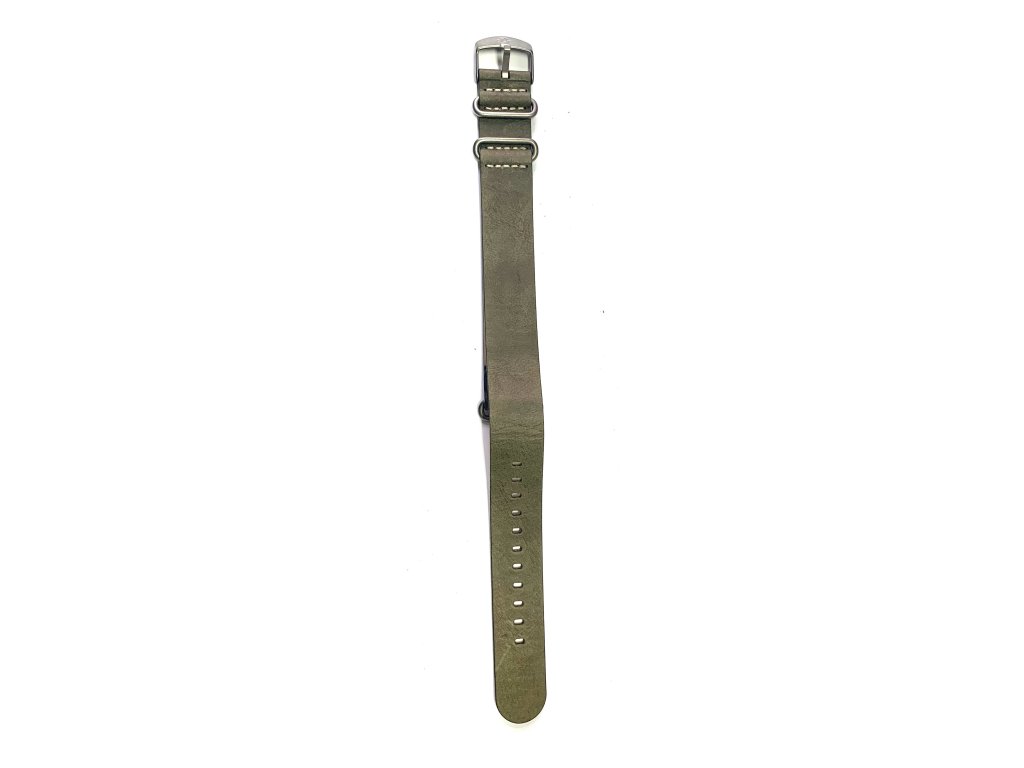 Řemínek na hodinky od firmy Timex. Materiál řemínku-kůže(průvlekový) hnědozelený ,stříbrná kovová spona