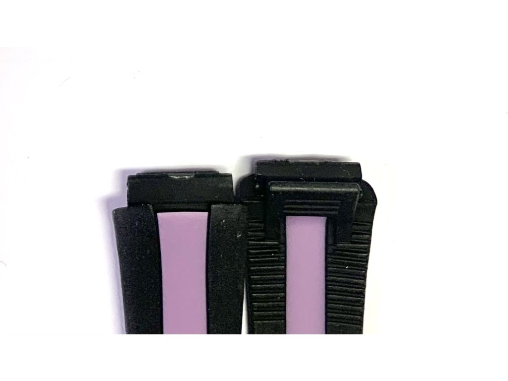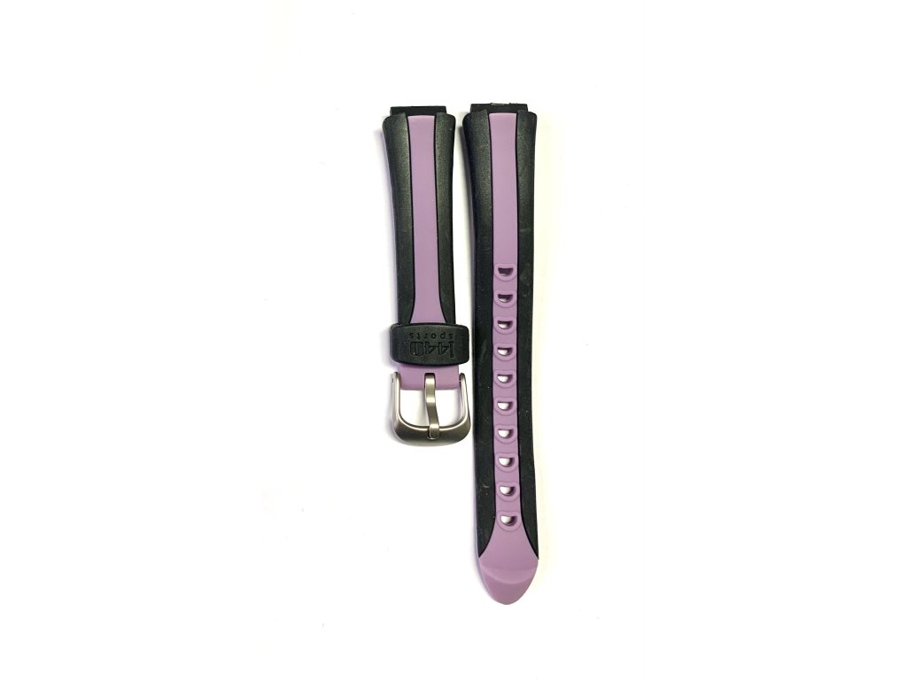 Řemínek na hodinky od firmy Timex. Materiál řemínku- gumový,černý/fialový,voděodolný,kovová spona,specialní uchycení na určitý model hodinek