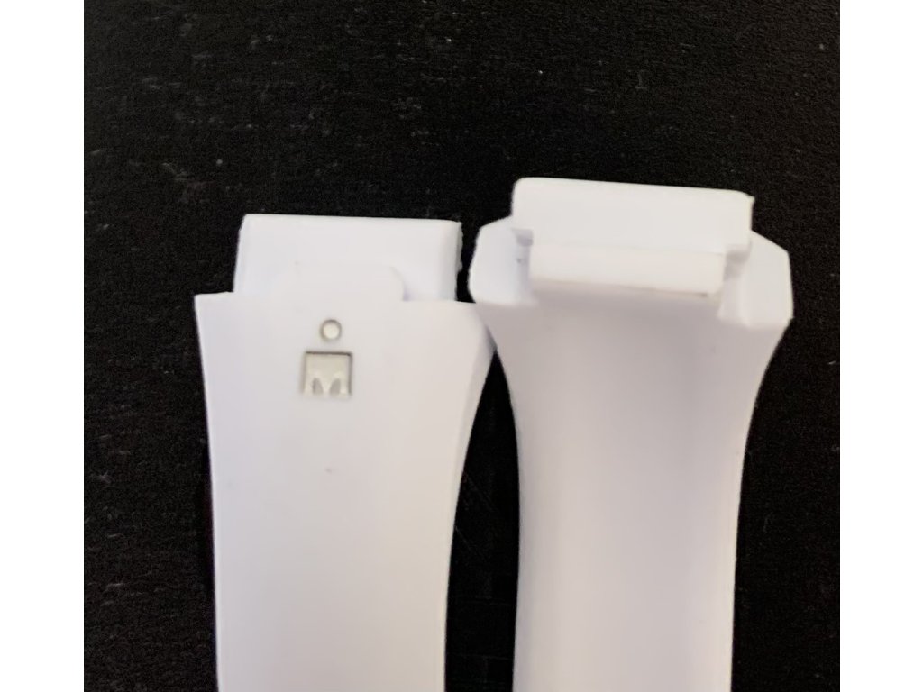 Řemínek na hodinky od firmy Timex. Materiál řemínku- gumový,bílý,voděodolný, kovová spona,specialní uchycení (bez záruky na zabarvení)