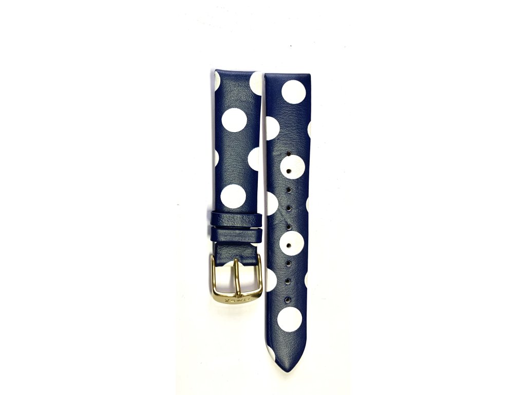 Řemínek na hodinky od firmy Timex. Materiál řemínku- kožený,modrý/bílý,s motivem,zlatá kovová spona,uchyceni standart