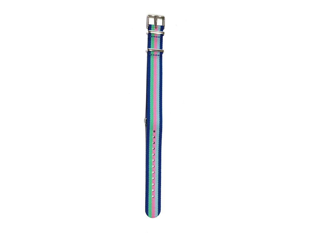 Řemínek na hodinky od firmy Timex. Materiál řemínku-silonový (průvlekový) modrý/zelený/růžový (pruhovaný) ,voděodolný,stříbrný kovová spona