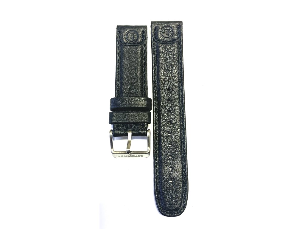 Řemínek na hodinky od firmy Timex. Materiál řemínku- kůže,černý,stříbrná ocelová spona,tence prošívaný,voděodolný,uchycení standart